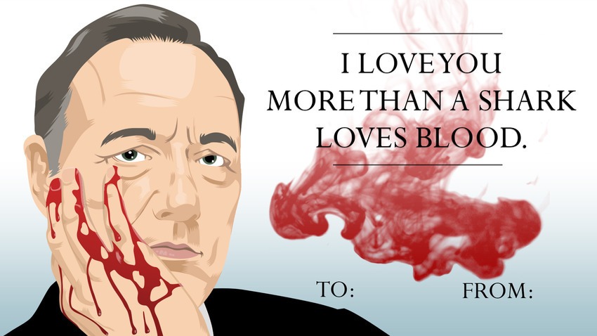 In what is probably the most famous line from the show, Kevin Spacey says “I love that woman. I love her more than sharks love blood.” While you might have seen this on some Valentines cards yesterday, it is not quite the sentiment most of us look for in love. His sense of love is predatory, and the only people he respects are those who are both competent and ruthless. Complementary to this, Claire’s best line is “my husband doesn’t apologize. Even to me.”