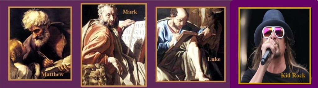 Evangelist depictions from Homiletic and Pastoral Review.  Kid Rock photo adapted from Eva Rinaldi.        Click image for photo source details.