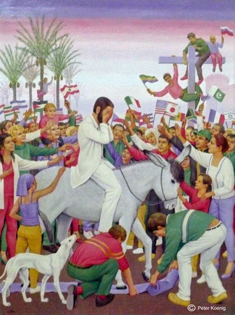 Almost two millennia ago, Jesus, aware that a public struggle with the authorities awaited him, entered Jerusalem riding a donkey, greeted in triumph by the same citizens who days later will call for his execution. The public greeted him in a fashion typical of someone highly favored, waving palm fronds, a symbol of triumph, and laying them at his feet. Jesus of Nazareth, the prophet, rabbi, and healer, did not hide or shrink from the authorities he knew would challenge his public ministry. And people were glad for it. In those days, palms were also the symbol of Palestinian resistance to the Roman occupation of their homeland. The followers of Jesus wanted the new earth he preached as much as the new heaven.