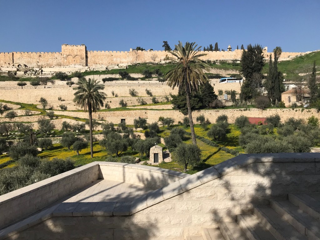 Last week I was thinking about this when I visited the Garden of Gethsemane in Jerusalem. Overlooking the city of Jerusalem on the other side of the Kidron Valley, the Garden of Gethsemane sits at the base of the Mount of Olives. If you have not been to Jerusalem or the Holy Land, it’s hard to imagine how close so many of the sites are to one another. Gethsemane, for example, is only about a fifteen-minute walk to the Temple Mount or the Haram esh-Sharif, one of the holiest sites in Judaism and Islam.