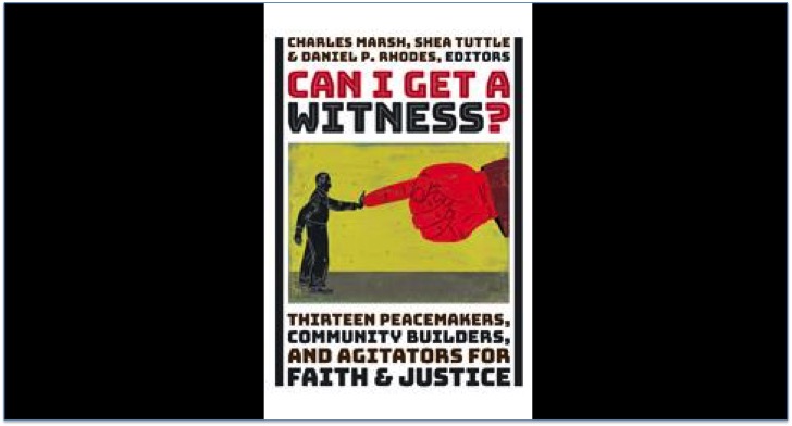 Are you looking for a challenging, provocative, and inspiring read for your Lenten journey this year? I highly recommend the newly published work, Can I Get a Witness? Thirteen Peacemakers, Community Builders, And Agitators for Faith and Justice (2019), edited by Charles Marsh, Shea Tuttle, and Daniel P. Rhodes. It’s true, there is nothing about Lent in the title of this book. However, if the days of Lent are meant to heed Jesus’ proclamation of metanoia, to repent, because the Kingdom of God is at hand, then this book provides thirteen portraits of how this has been done in the concrete.
